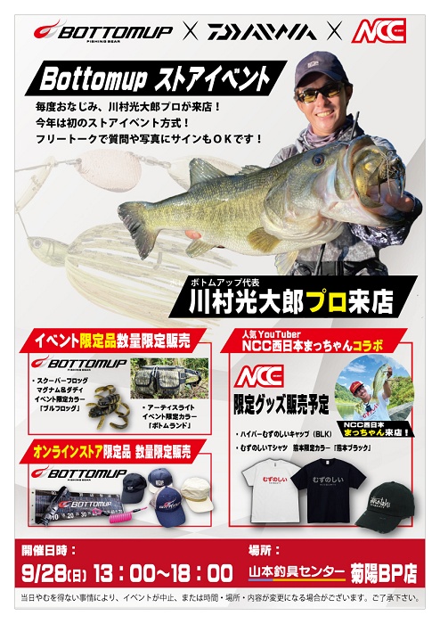 9/28(日)13:00より、山本釣具センター菊陽バイパス店にてストアイベントを開催させていただきます! 店頭アドバイザースタイルですので、お気軽にお声かけください。