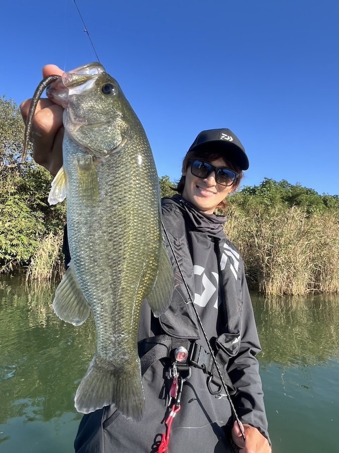スティーズフィネスストレートを使った1.3gネコリグで丁寧に探ると、しっかりバイトが出てくれます。