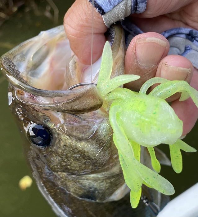 けっこう多いのが下顎フッキング。 10尾以上釣れて数釣りは楽しめますが... やはり、ビッグフィッシュを釣りたい。