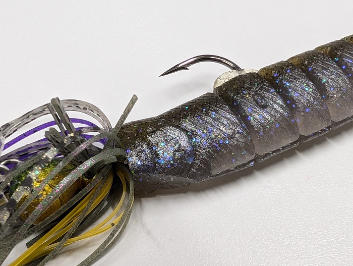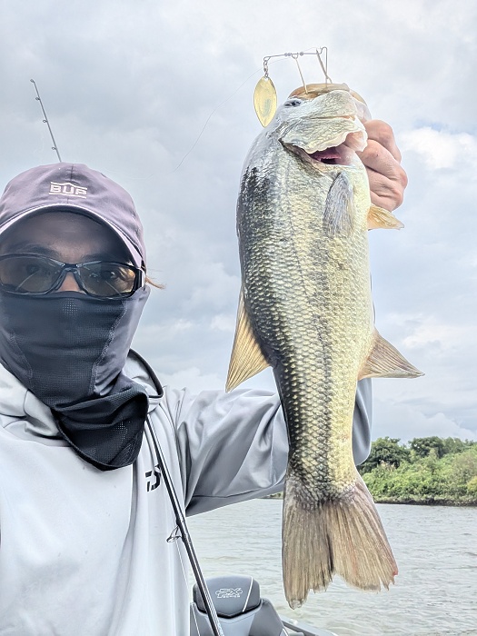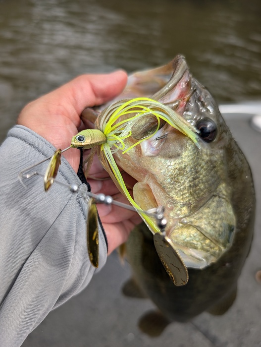 紙一重での成功となりました。 ブレードジグは久しぶりに使いましたが、樹脂素材のブレードとヘッドとの接触音が独特で、警戒心の強いバスにも効くと感じています。