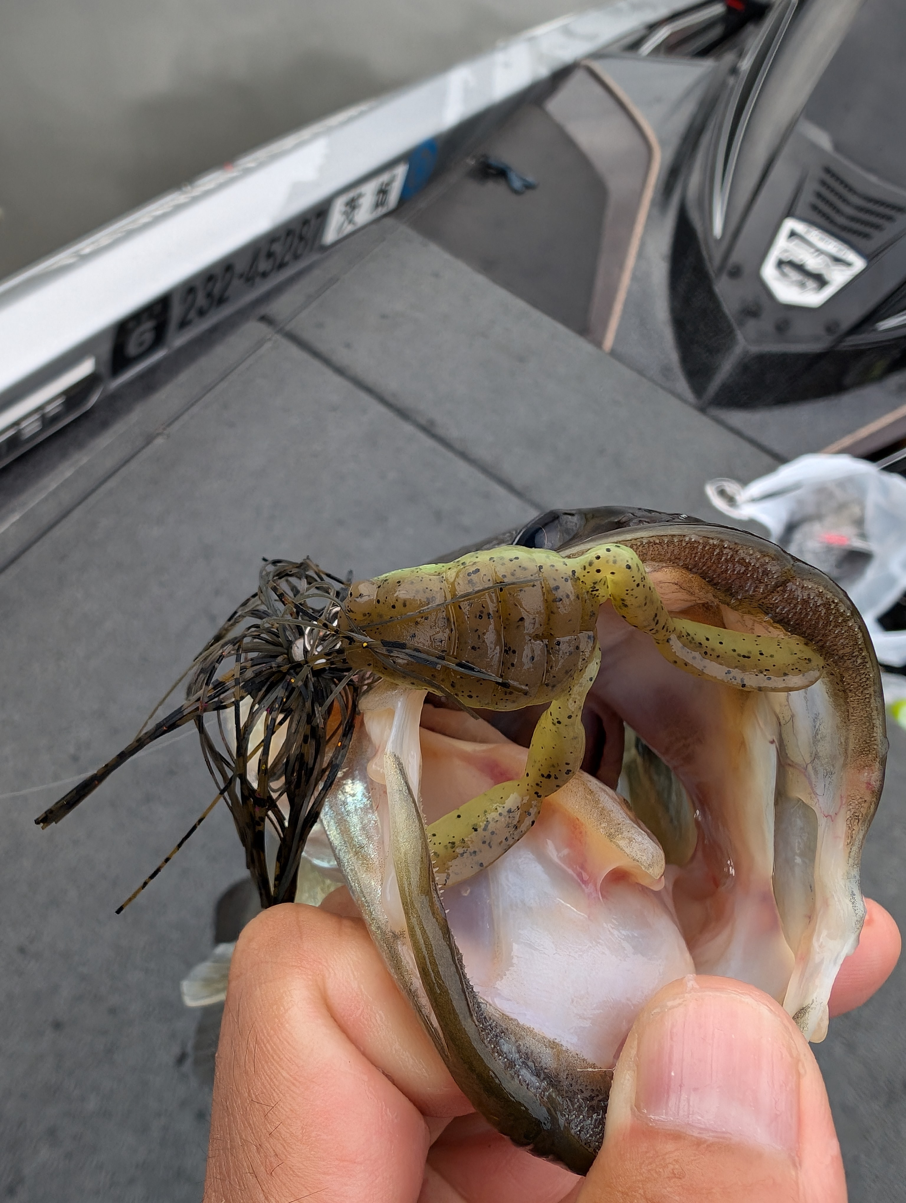 さて、さして参考にならない釣果ながら、ヒットルアーはクネリーのテキサスリグとスナックジグ+スクーパーフロッグ。