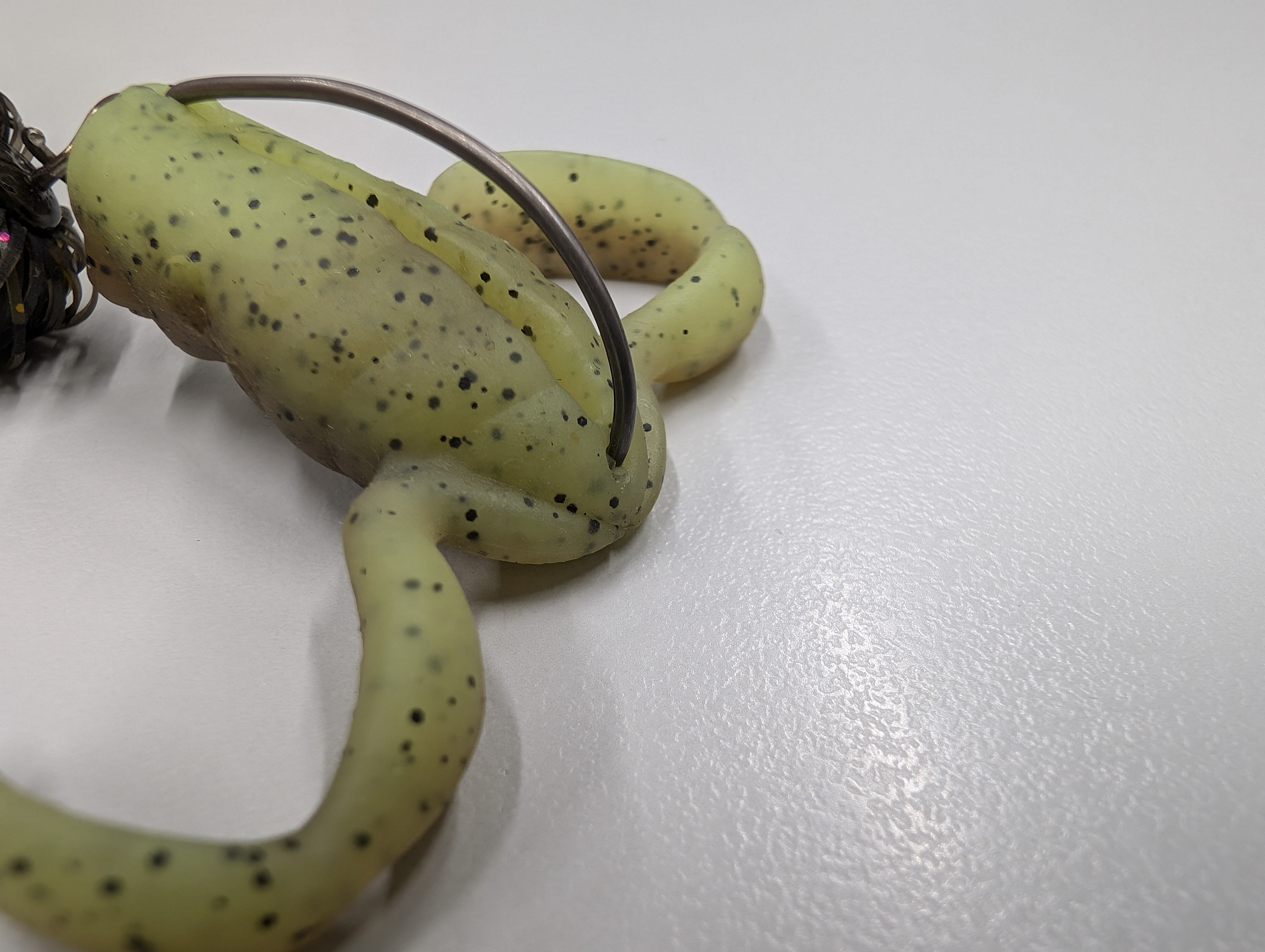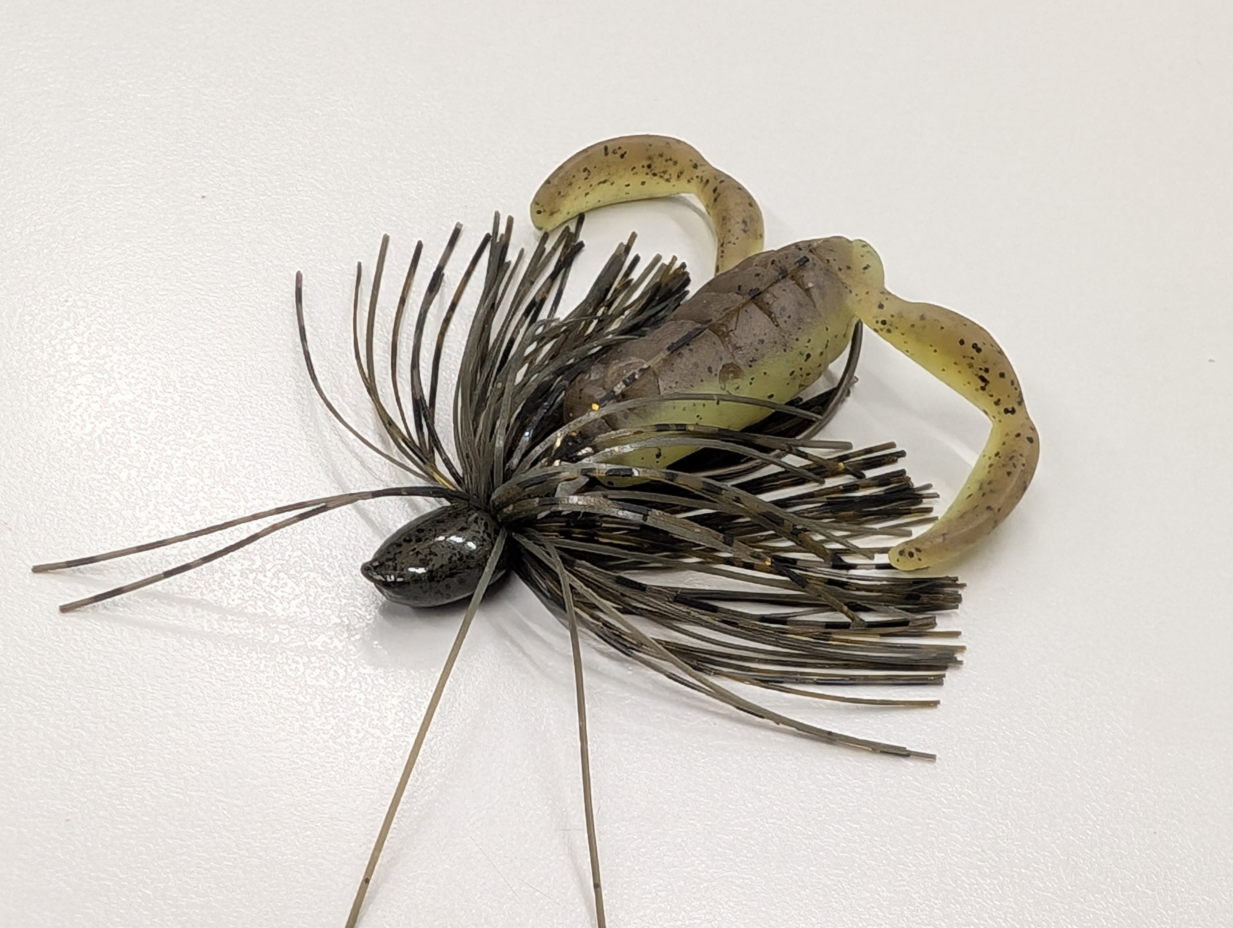 もう一つのスナックジグ+スクーパーフロッグは、スクーパーフロッグダディやマグナムで実績のあるジグストセッティングのミニ版ですね! スナックジグはスカートが細いので、フィネスワームとの相性も良いのです!(^^)!