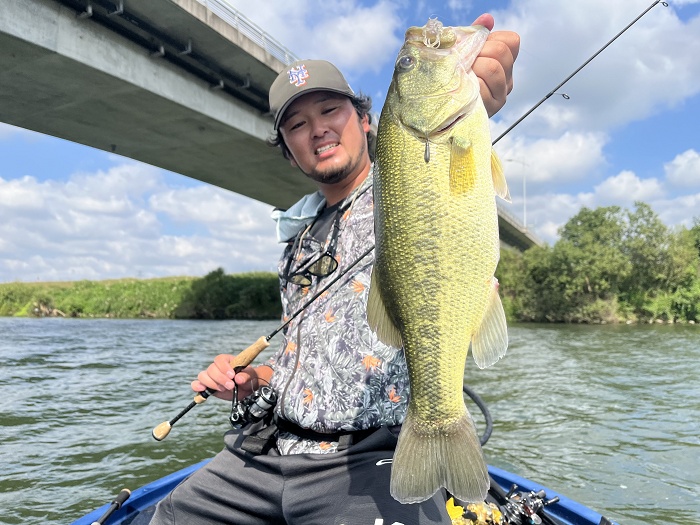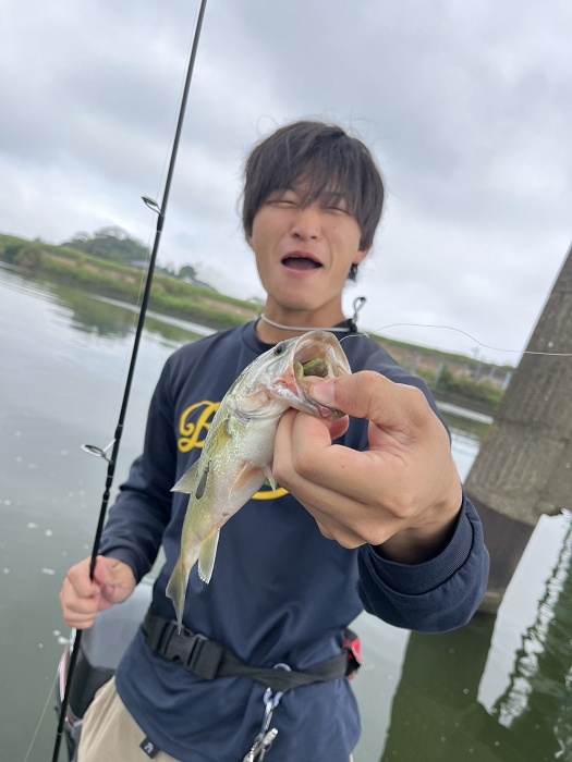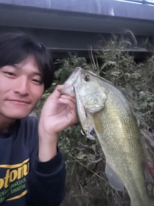 少し早めにボートを上げることになったのでラストはオカッパリへ! 遠賀川水系の笹尾川のよくバスが見えるスポットに入ると、運良くバスを発見!