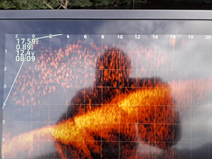 画面を埋め尽くすベイトのかたまり。恐らくハスの稚魚だと思われます。