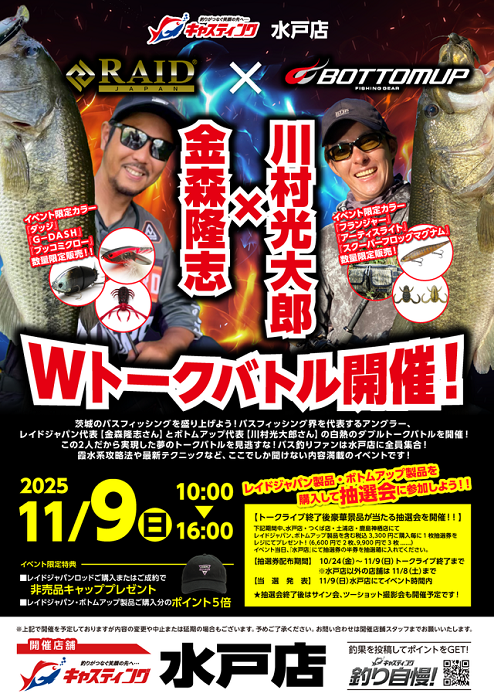 11/9(日)10:00~キャスティング水戸店にて、久しぶりにカナモとのトークライブ!
