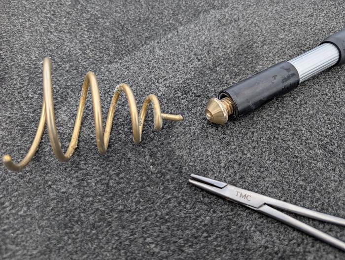 写真のように僅かな部分をつまむだけで、締め込んだルアー回収機を外すことができるとは、私も想定外でした。