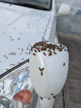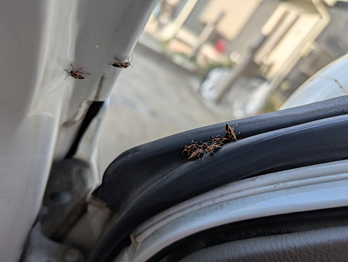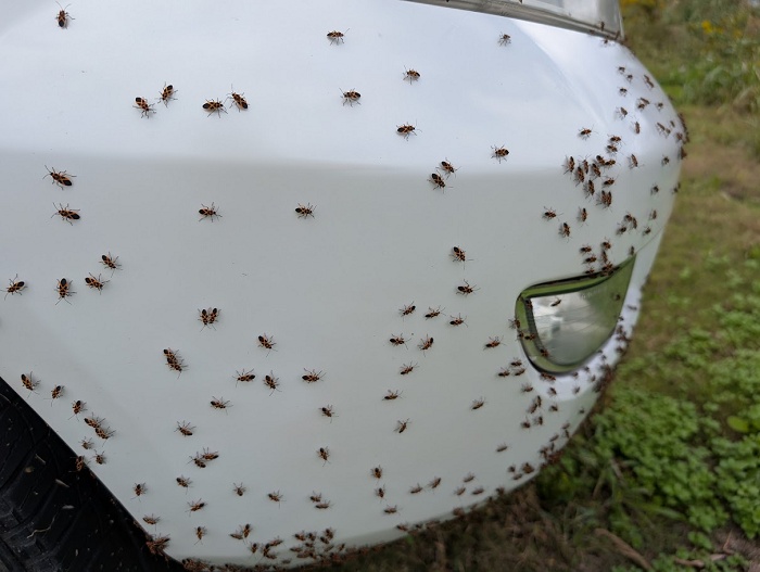 このままではどうにもならないので、とりあえずバケツと水で700~800匹くらいは落とし、恐る恐る車の中へ