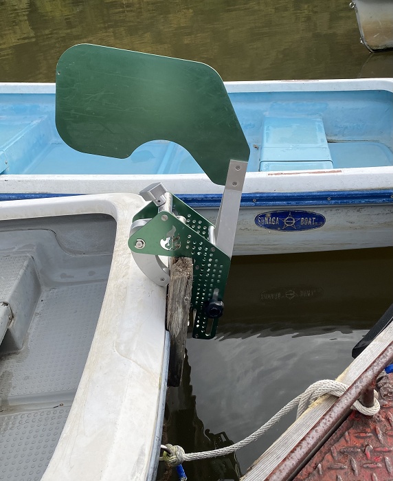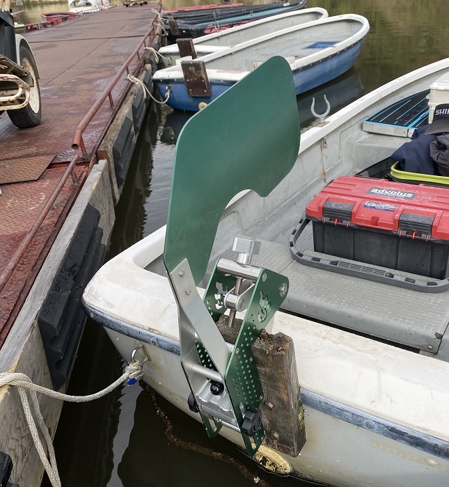 桟橋に係留してる時は立てたままセット出来るので桟橋にぶつかって変形したりしません。出船後はワンタッチで水中に降ろせます。
