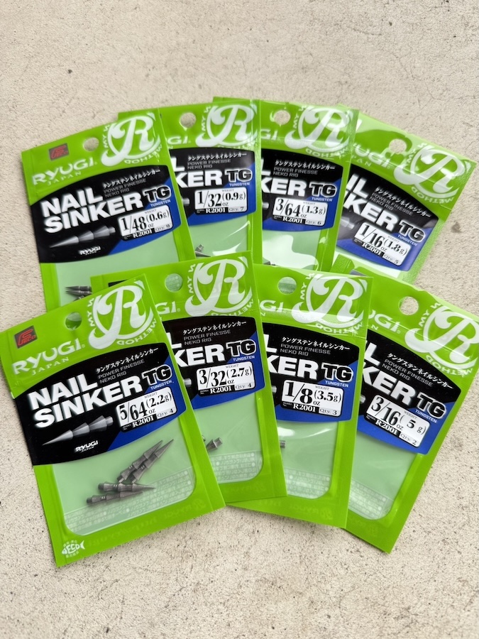 今週はリューギ新製品の『ネイルシンカーTG』の紹介からになります。 特徴としては、テーパードデザインを採用しているため、