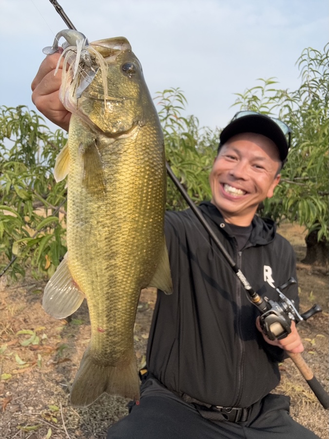 別の日には川西さんにお願いして、児島湖水系にてボートフィッシング。今年は…ウイードがもっさり残り過ぎて…多少ワイヤーベイトで仕掛けにくい雰囲気ながらレベルスピン1/2oz +フルスイング3.5inchの黄金セッティングで良い魚を仕留めさせていただきました。