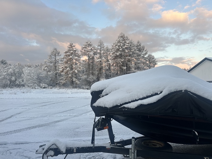 この時の積雪は10〜15センチほど。今はほとんど溶けました。 降った雪が根雪となり積もり続けるのはまだ少し先になりそうなので、まだ桧原湖に浮く事は可能です…笑