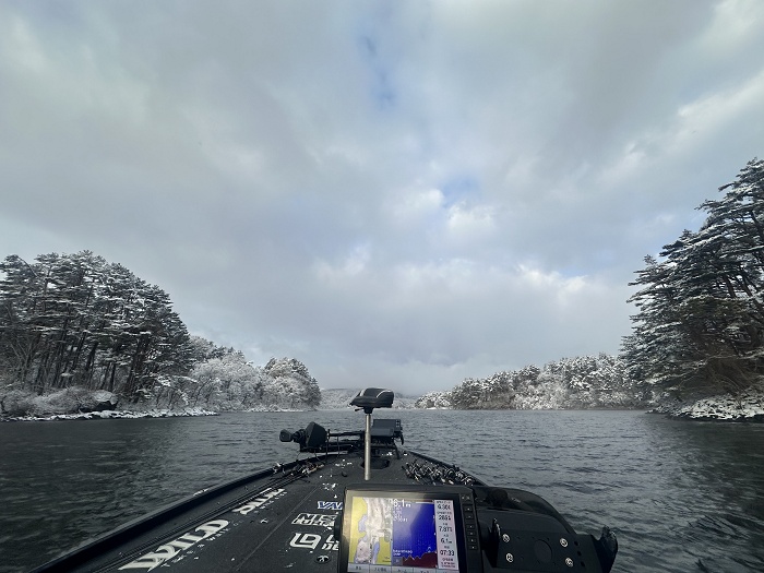 雪が降るば日が出てきて、水温も8℃台まで低下していますが、それでも暖かい日は釣りの幅を出して楽しめています(^^)