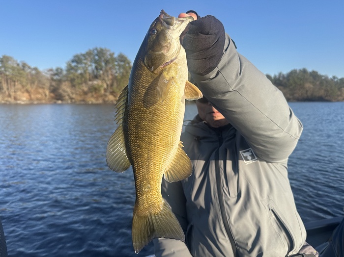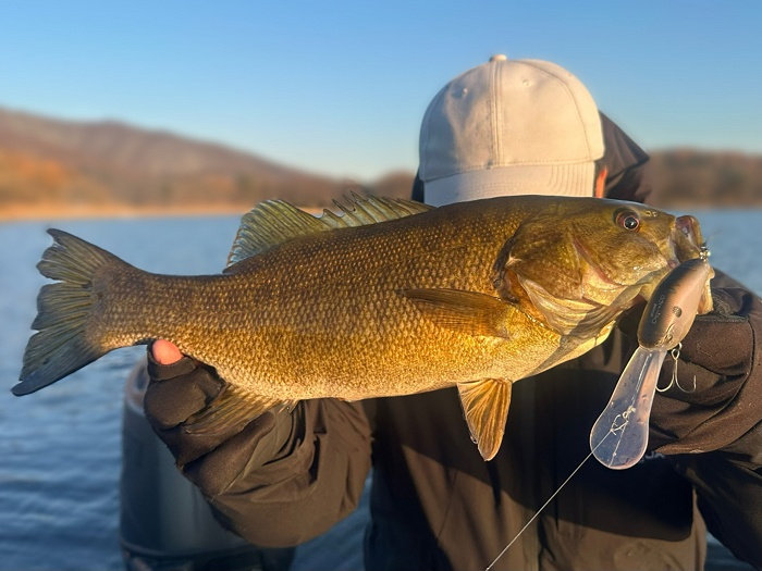 そして暖かくなって来た午後はリアクションへのバイトが少なくなり、食わせのダウンショットへの反応が良くなりました。 釣れるスポットも、午前中は流れを避けられる地形中心でしたが、午後はハンプトップ周辺など、流れが当たり易い場所にも出て来た印象。