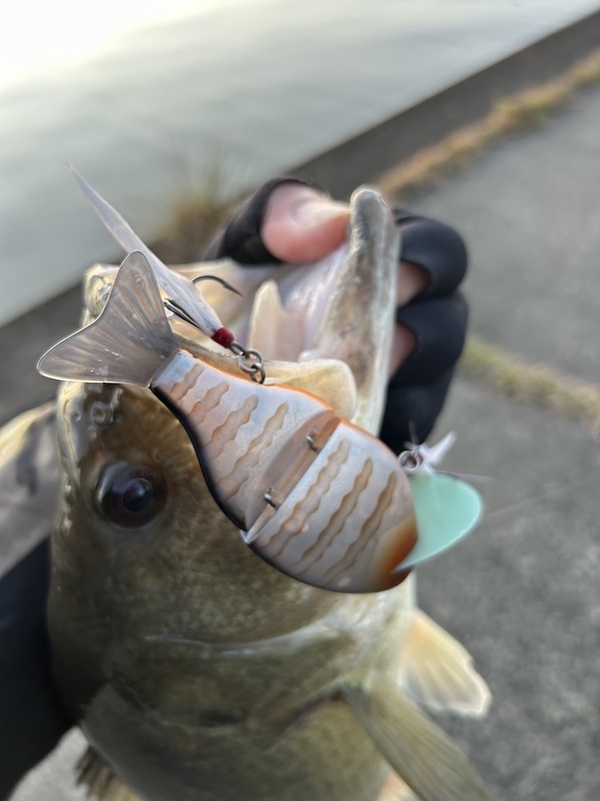 「水が悪い中でもちょっと水がマシな場所」があり、この魚も周辺ストレッチよりも比較的水がマシ(良いというレベルではないですが)なエリアでキャッチしました。それに加えて、周辺にはカイツブリもいたので、この時期に釣れる条件的にはしっかりと揃っていましたね。秋と比べてもこの時期は明らにシャローにバスが寄り易い傾向が強いので、晩秋〜初冬のシャローゲーム、オススメです。