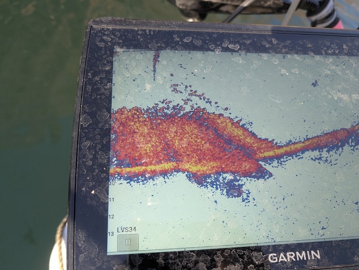 今回、ワカサギの群れを探しましたが、ワカサギのサイズが例年より少し大型です。