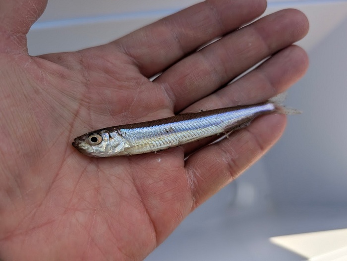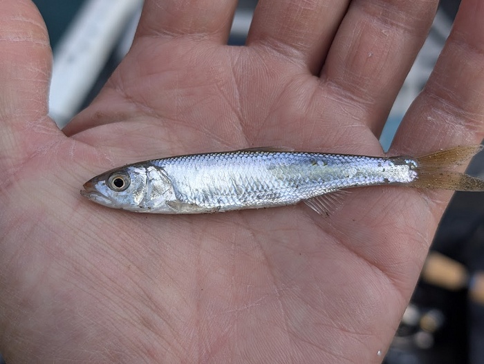 小型のワカサギほど、この距離感が狭くなる傾向があります。(捕食者に追われているときは別)