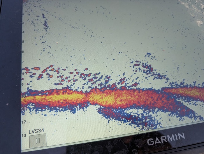 ハスはフィッシュイーターですので、この後数年にわたり相模湖全体の各種の資源量も大きく変化していくと思います。 もちろん、ワカサギの群れも存在します。
