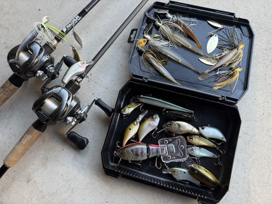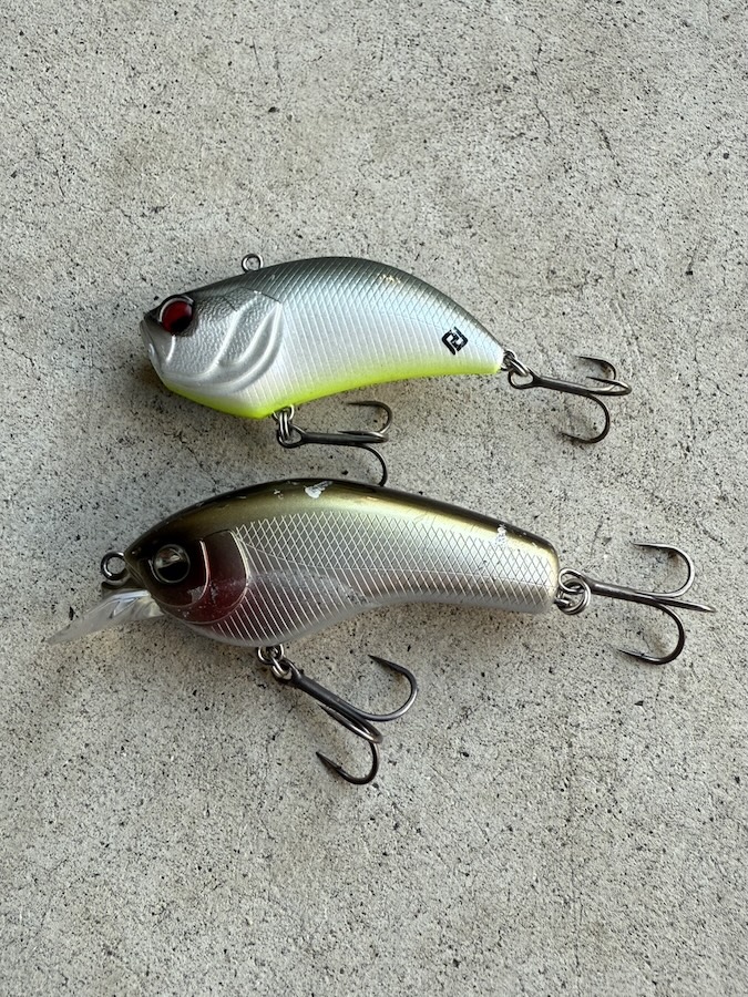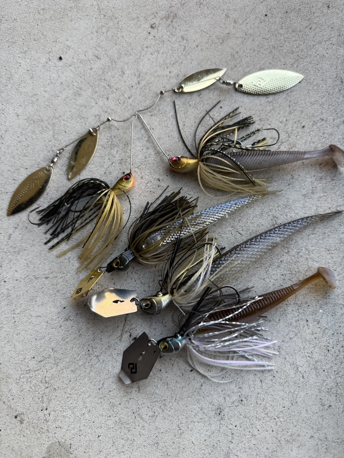 皆さんが気になるであろう、今時期のボックスの中身はこちら。 ウィード絡みを巻いて仕掛けていけるルアー達が中心。ワイヤー関係は定番のレベルスピンとマックスブレード。ハードベイトの軸はSKM(スーパー高速マシーン)とレベルバイブ。ウィードを切るか突っ込ませるかでルアーをローテーションしていくイメージ。どちらにしてもウィードがバイトトリガーになることは間違いなしです。今のタイミングは、スローに探るよりスピード感やルアーパワーで仕掛けるほうが楽に仕留めることができます。