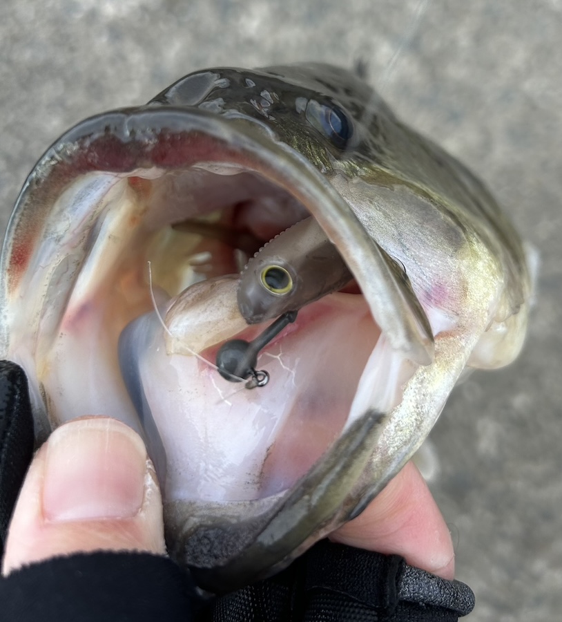 ルアーは安定のスティーズリアルスラッガーRの4.8インチの1.8gミドスト。こういった風が強い日によくある傾向ですが、