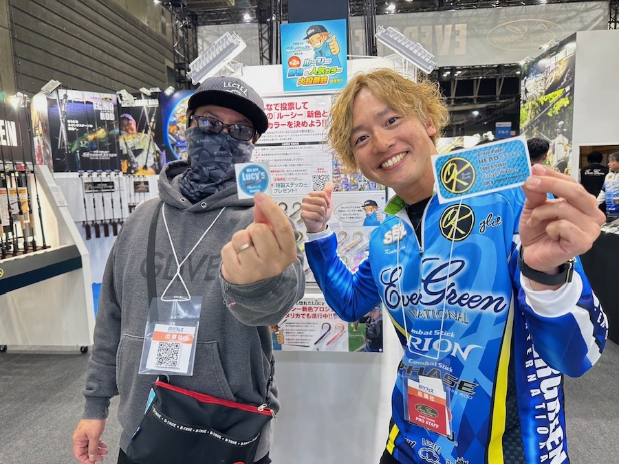 本当にありがとうございました!ルシエルが持っている限定のルーシーステッカーは釣りショーで投票してくださった皆様にお渡ししたステッカーです(^^) 僕が持っているエバーグリーン×OKステッカーはトークショーに参加してくださった方にお渡しするステッカー! どちらも引き続き、