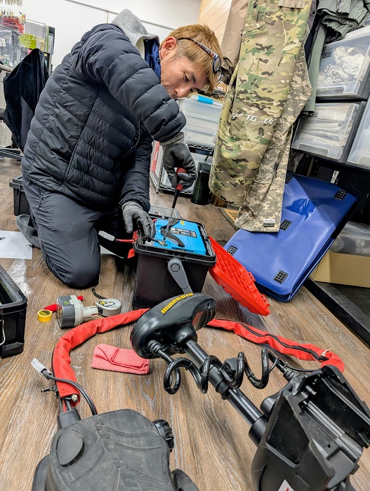 この冬の釣行はライブソナーの練習に充てるつもりでいたところ、エレキのスケグが曲がっていたことで修理に出したらモーター部の焼けも発覚”(-“”-)”