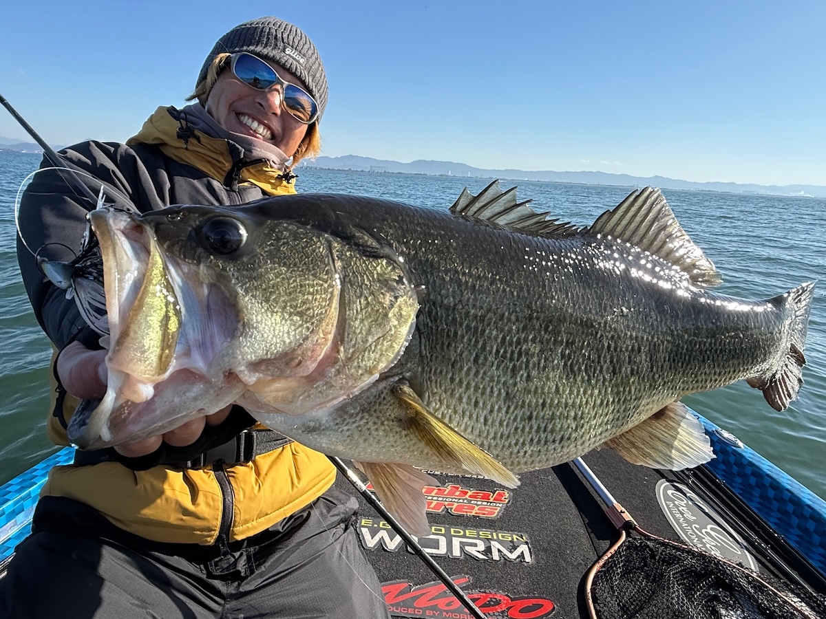 寒波が来ている時の琵琶湖湖上!これはまだ風が吹かない日に出たのですが、基本寒波襲来のタイミングは冷たい北西〜西風が強く吹き付けます。この風は水温をガンと下げるので、この時期らしい水温に変わってくるタイミングですね。