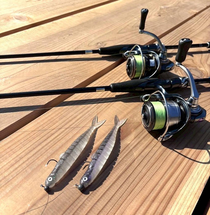 どちらもジグヘッドリグで、釣友は5インチに合うフックサイズのジグヘッド(D-ストライカータイプスイム2/0)にウィールヘッドのペラを移植していました。 ここからは天候次第。