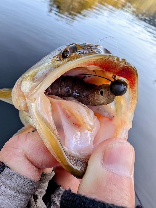 午前中に1匹釣ってからは無の時間が続き、終了間際にフツーにボトストしたら1投で釣れちゃいました(^^; 水温は7℃台。 ボート店での直近の釣果も大半はノーフィッシュとのことでまだ真冬の状態ですが、当日会ったライターの大場未知さんはシャローで2発食わせており(いずれもキャッチならず)、微かに春の兆しかもしれません。