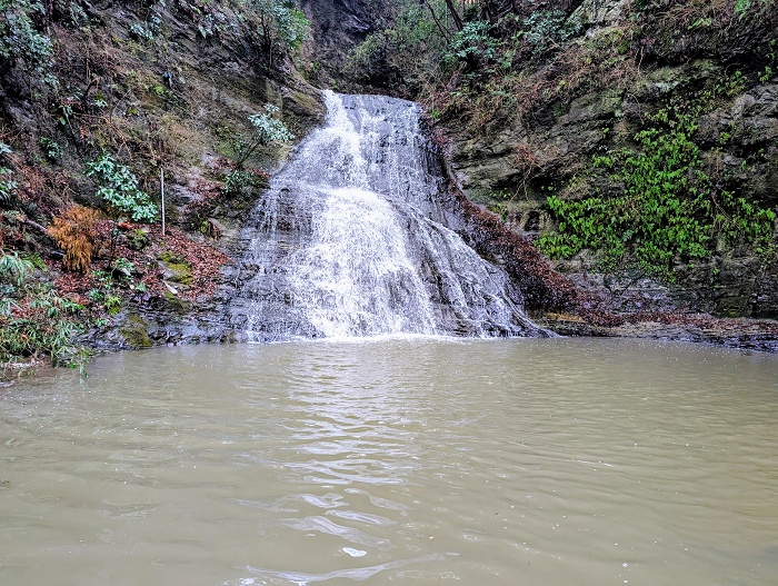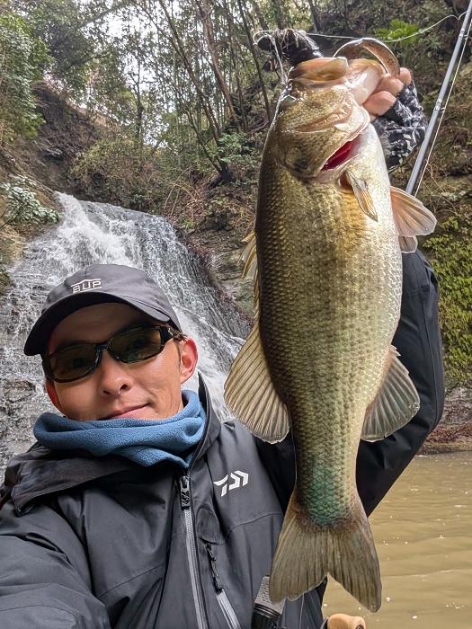 ワンド最奥の滝にて、前日は激しく水を落としていたはずも、落ち着きを取り戻しつつある雰囲気。 スナック+メガを滝つぼに入れ、ストで白泡から出した直後に重み!も掛からず。