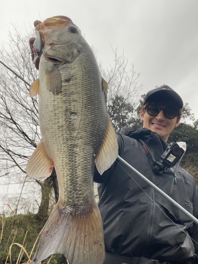 その後釣れなくなったのでまた時間を空けて入り直すことに。数時間置いてまたサイレントシャッドで投げ続けると、最後に一発ドカンで45クラスが釣れてくれました!