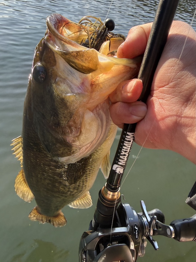 カバーや水中に木が沈んでいるスポットは騙しやすいので角度を変えながら細かくしつこめに狙いました。
