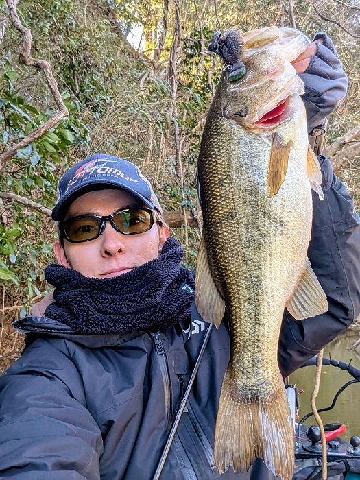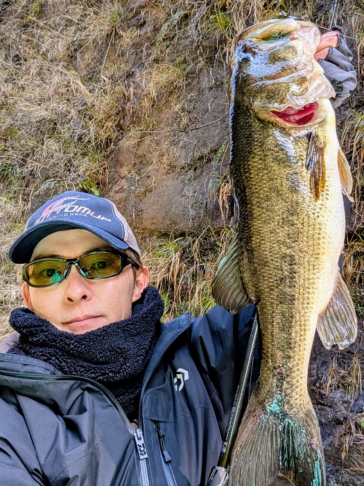 無事キャッチしましたが、掛かりどころは口のキワ付近。 押さえ込まれる感触だけの動かないバイトで、シャローに上がるも冷え込みで食いつきが弱い傾向に感じます。