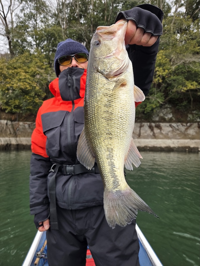 こちらもナイスサイズ。今週はかなり冷え込みがきつく、厳しい状況が予想されましたが、魚は浮きまくりで産卵に遡上するワカサギを狙いまくりでした!