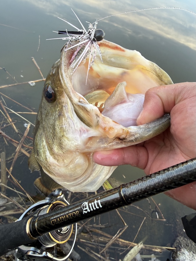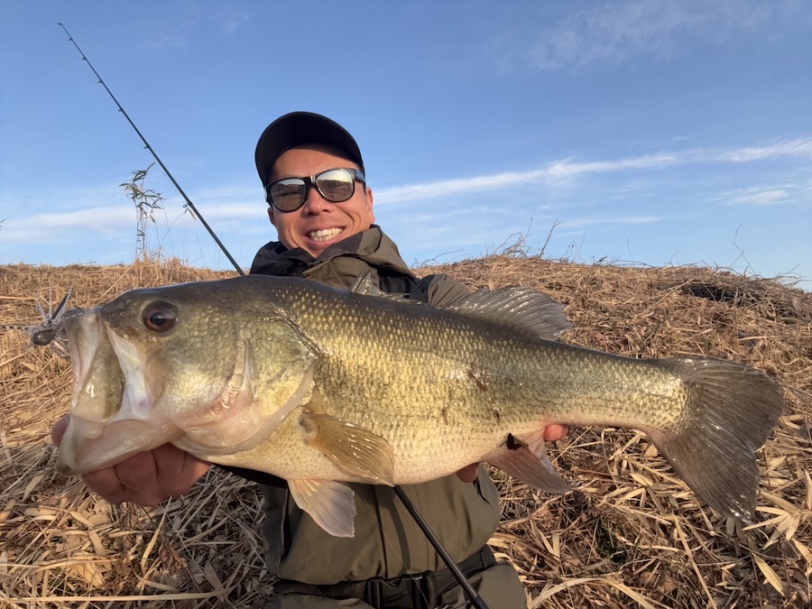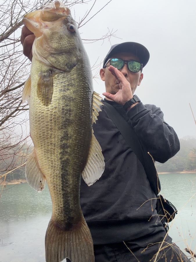 季節感の進行が早そうなため池をピックアップして、何箇所か手早くラウンド、春モードに切り替わっている魚だけを狙う展開で、シャローを中心にゆっくり動くボリューミーな巻き展開orカバー展開の2択で狙いました。結果は1発、