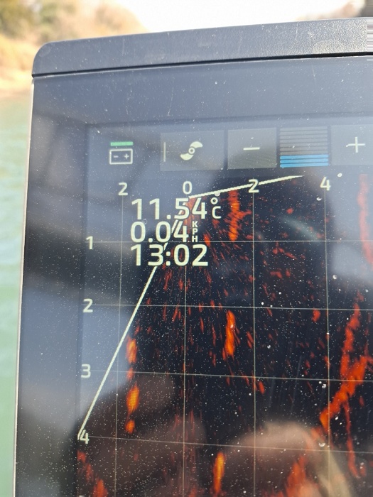 ワカサギもあまり見えず、魚探にもあまり映らずです。