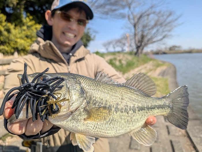 釣ったバスは水深60~70cmの場所で想像していたよりもバスたちはシャローに差してる感じがありました。 また、一匹は餌を捕食していたのですが、カエルやオタマジャクシ?のような餌でした。