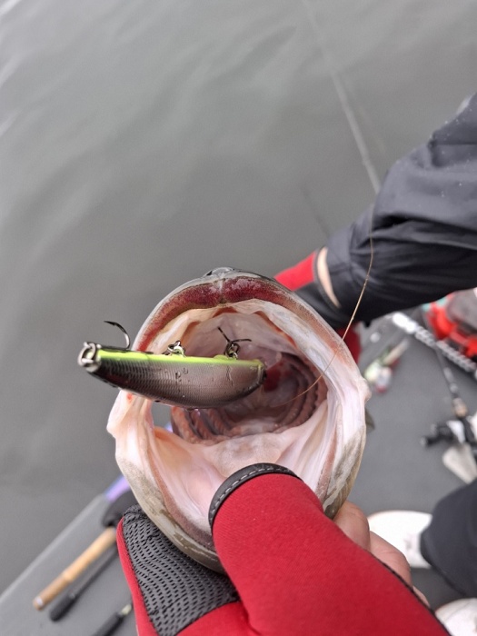 そしてお昼前には雨が降ってきましたが、この一瞬の時合を捉えるように、立木回りをヴァルナで探りビッグバイト。