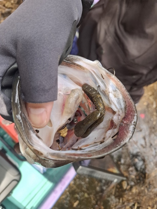 ドライブビーバー3.5が口奥にしっかりフッキング。常にイメージしておくことが、慌てずに動作をするコツですね!