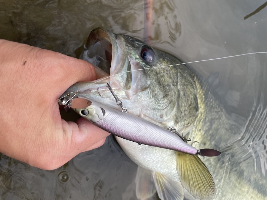 水深は30〜40センチほどのシャローをただ巻くだけなんですが、やはり差してくる魚はそんなたくさんいるわけじゃないので、とにかくランガン! そしてキーはシャローフラットということ!