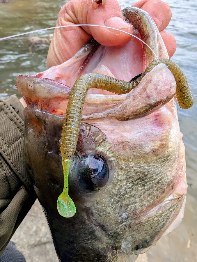 寒い日で、ワカサギパターンの気配すら感じられない日並みでしたが、お互いブレーバーⅡのスナッグレスネコリグで2本ずつキャッチ! フィールド違えど、同リグが活躍してくれたこの一週間でした。