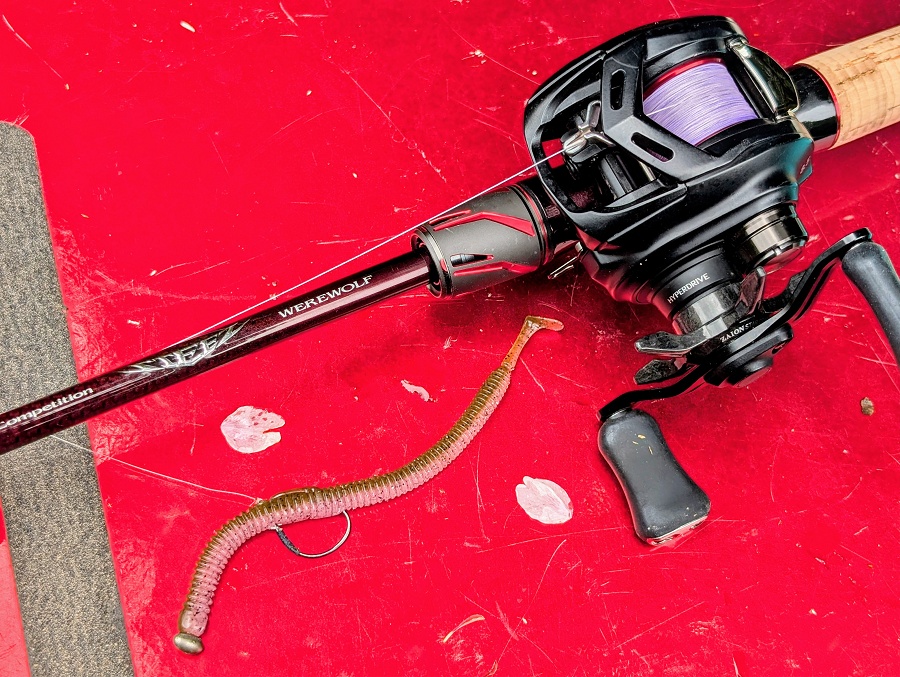 ちなみに、スナッグレスネコリグは長年スティーズ ウェアウルフ+フロロ10ポンドで揺るぎませんでしたが、PEベイトフィネスがハマったことは大きな収穫! スイベル付きの「N.S.Sフックパーフェクション」を用いずとも糸ヨレが発生せず、スナッグレスネコリグに必要なフッキングパワーも伸びの少なさでしっかり伝わる。