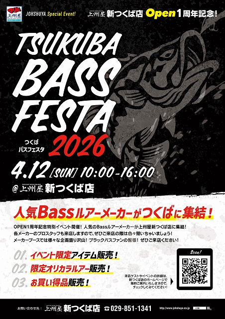 上州屋新つくば店にて開催される「TSUKUBA BASS FESTA 2026」へ、ボクと草深、鈴木翔でお伺いします!