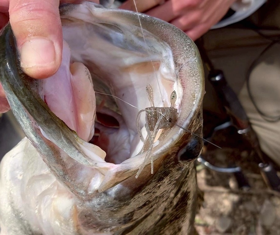 クアッドフォーゼのシュリンプモードのショートリーダーダウンショットにて! 昨年の紀ノ川でもクアッドフォーゼのシュリンプモード(ネイルリグ)でモンスターをキャッチしましたが、今年もモンスターが口を使ってくれました。毎年特大をロケで連れてきてくれるクアッドフォーゼさまさまでした。
