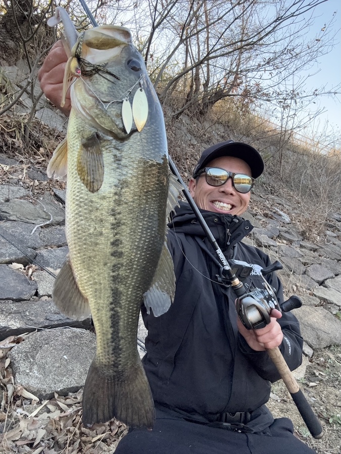 ブレードが見えるか見えないかのレンジを巻いて、黒い影がぶっ飛んで来て一気にレベルスピンが消える瞬間は何度味わっても興奮できます! マジで面白くて、1番好きで得意な釣り方です。皆さんも巻きまくってみてくださいね!