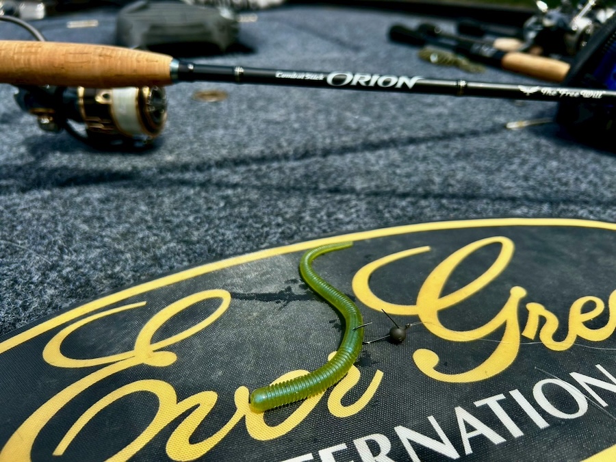 ルアー的には、フリーゲルチャンク(アイスフォーゲル)のフリーリグや、ルストクローラー5.8(アイスフォーゲル)のジグヘッドワッキー。ゾワゾワ(エバーグリーン)のフットボール系などでかなり釣れてます!
