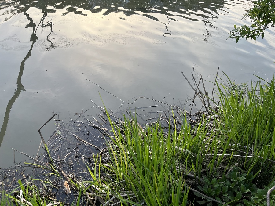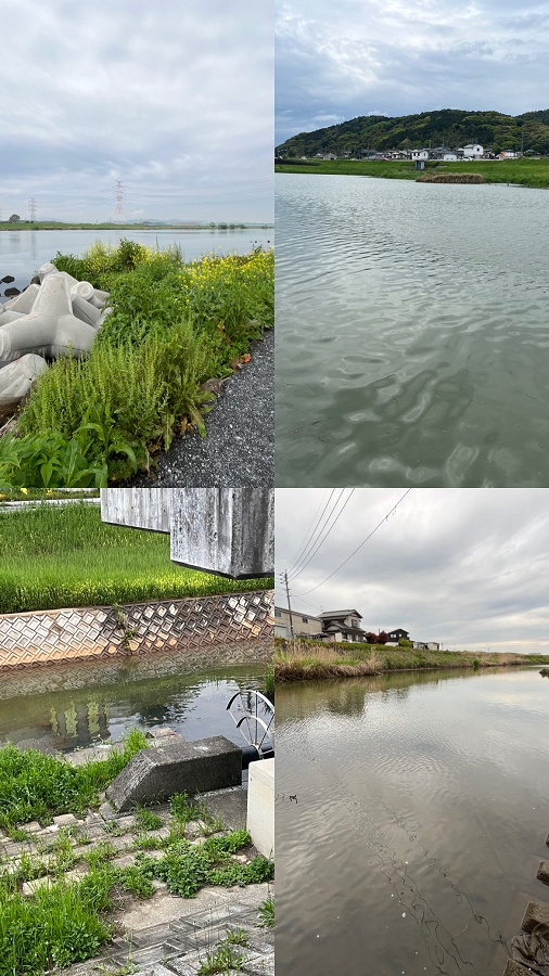 雨後の濁りと水温低下、手で触った水はかなり冷たく感じました。 本格的にスポーニングが始まった遠賀川。 スポーニングエリアとなるシャローフラットなどはネストのバスを意図的に釣りかねないので、捕食を意識して差してくるようなエリア選びを心掛けます。