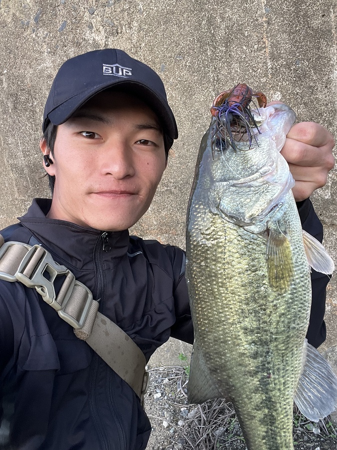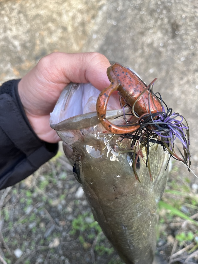 今回は代掻きの影響で濁りもあったのでカラーは[ダークグリパンネオンフレーク]。 シンカーウエイトは2.7gを使用してます。
