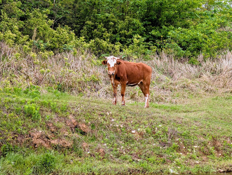 1日あればエレキのみでも回り切れそうな小~中規模レイクで、湖岸沿いは浅くカバーもほぼ無く、放牧された牛がモォ~・・・ 白ケツギョに対する情報は、ハードボトムを好むこと、あと魚食性ということ・・・くらい(^^;