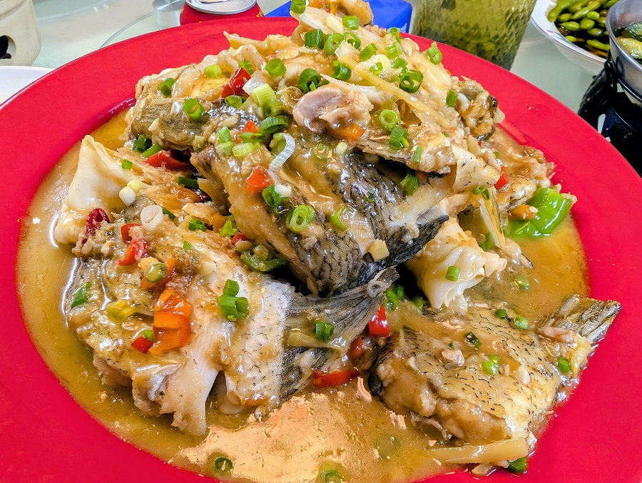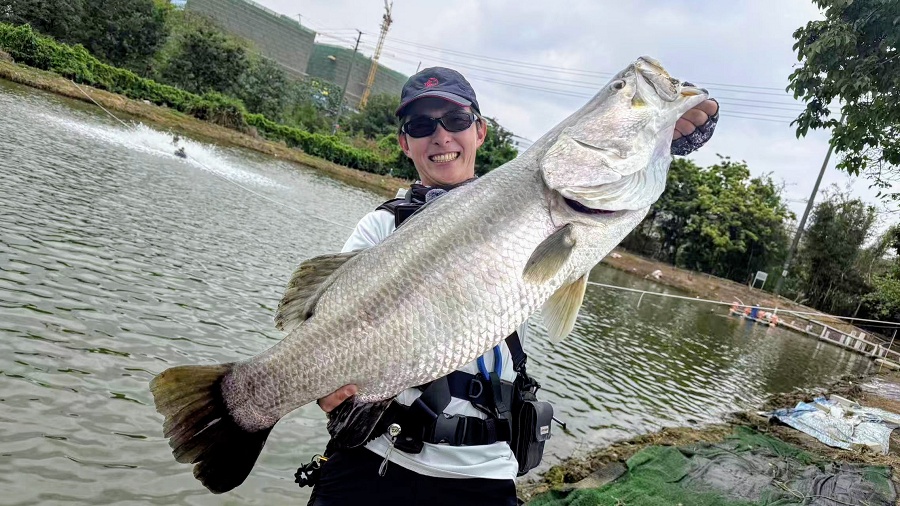 ただ、サイズは40cm未満といったところだったのですが・・・白ケツギョという別種は、最大80cmにも達すると!(写真は広州ダイワの社員が釣った白ケツギョ) ぜひ釣ってみたい!と、今回の釣行を組んでいただいた次第です。